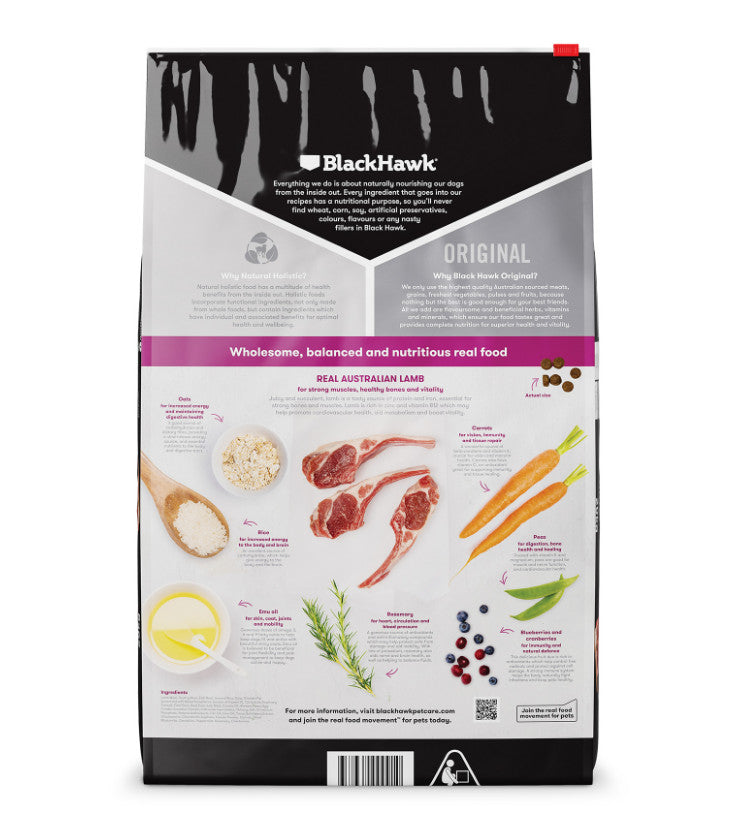 BlackHawk Professional Lamb And Rice Holistic Adult is Formulated to meet the nutritional levels established by AAFCO Dog Food Nutrient Profile for the growth and maintenance of dogs